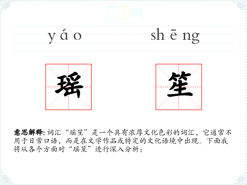 词汇“瑶笙”是一个具有浓厚文化色彩的词汇,它通常不用于日常口语,而是在文学作品或特定的文化语境中出现。下面我将从各个方面对“瑶笙”进行深入分析:
