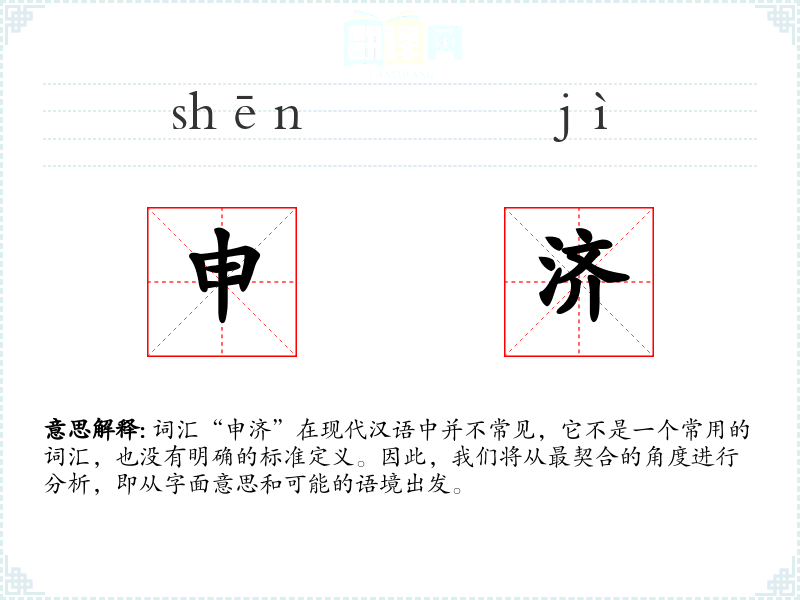 词汇“申济”在现代汉语中并不常见,它不是一个常用的词汇,也没有明确的标准定义。因此,我们将从最契合的角度进行分析,即从字面意思和可能的语境出发。