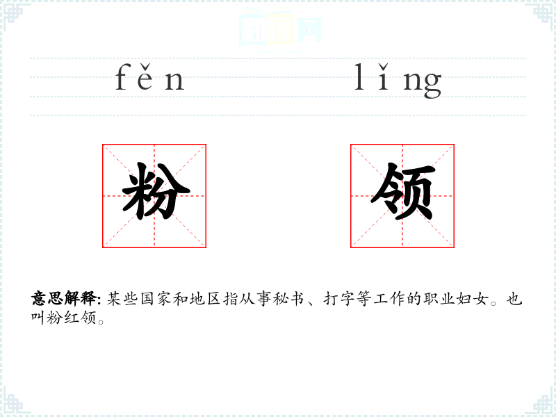 某些国家和地区指从事秘书、打字等工作的职业妇女。也叫粉红领。