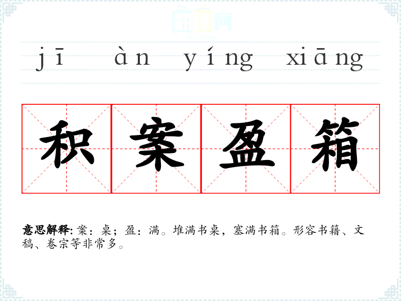 案:桌;盈:满。堆满书桌,塞满书箱。形容书籍、文稿、卷宗等非常多。