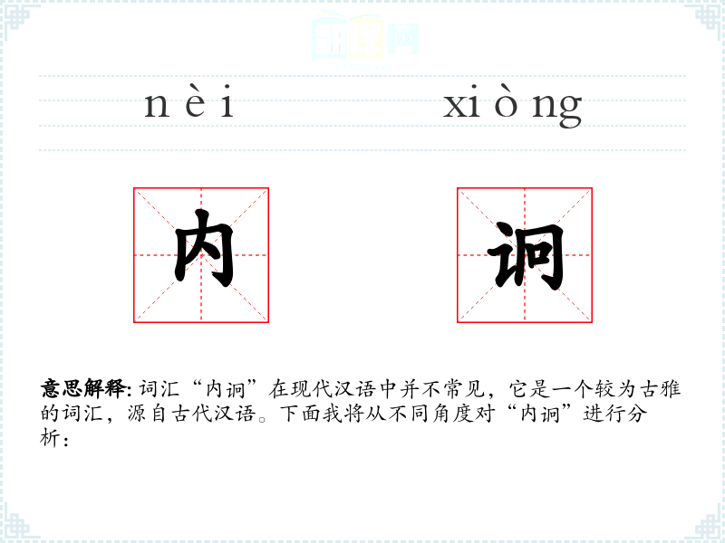 词汇“内诇”在现代汉语中并不常见,它是一个较为古雅的词汇,源自古代汉语。下面我将从不同角度对“内诇”进行分析: