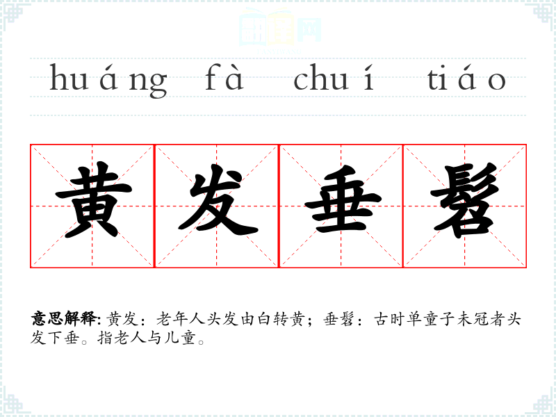 黄发:老年人头发由白转黄;垂髫:古时单童子未冠者头发下垂。指老人与儿童。