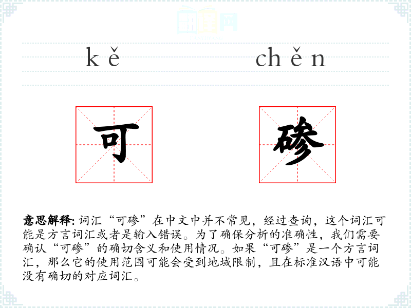 由于“可碜”不是一个标准汉语词汇,以下分析将基于假设它是一个方言词汇或特定社群中使用的词汇: