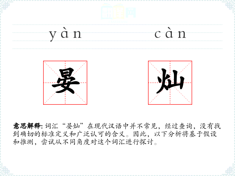 由于“晏灿”不是一个标准词汇,我们可以尝试从字面意思进行解释: