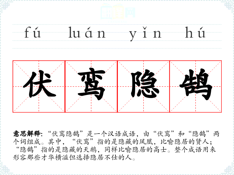 - 隐士:指隐居不仕的人,与“伏鸾隐鹄”意思相近,但“伏鸾隐鹄”更强调隐居者的才华和品德。