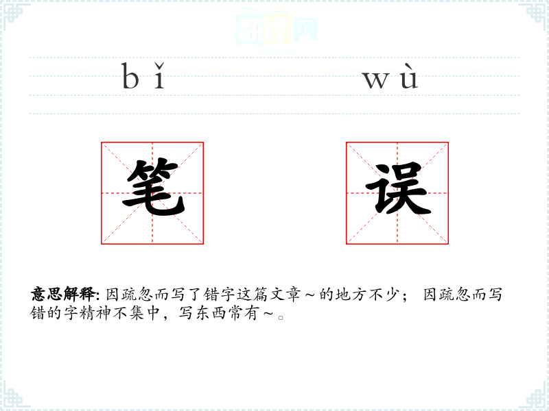 因疏忽而写了错字这篇文章~的地方不少; 因疏忽而写错的字精神不集中,写东西常有~。