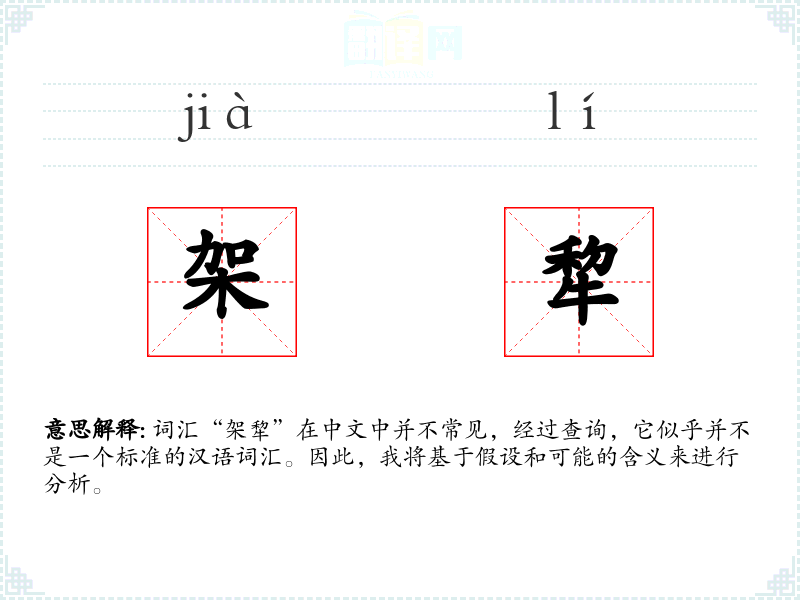 词汇“架犂”在中文中并不常见,经过查询,它似乎并不是一个标准的汉语词汇。因此,我将基于假设和可能的含义来进行分析。
