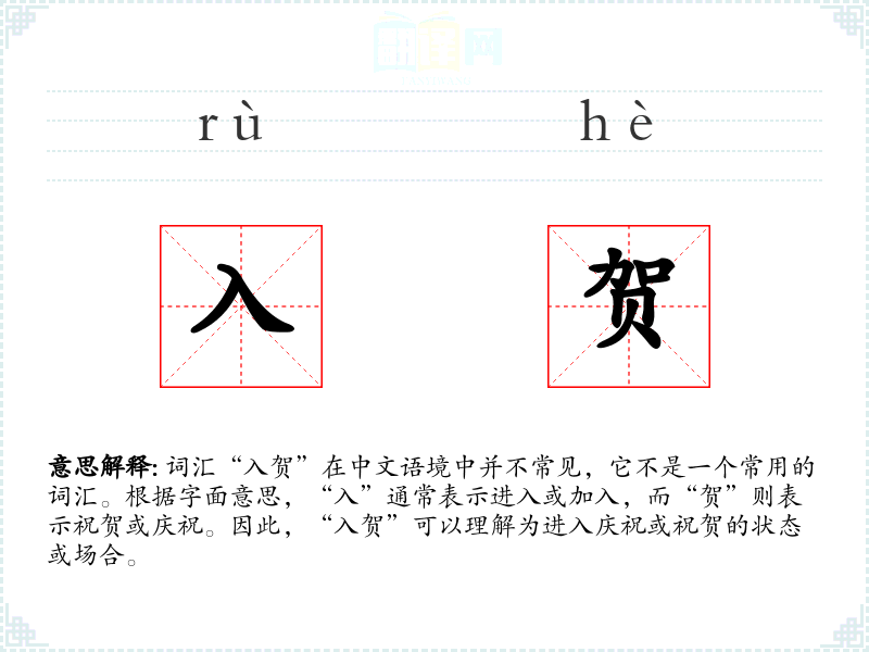 - 词源:“入”和“贺”都是汉字,具有悠久的历史。