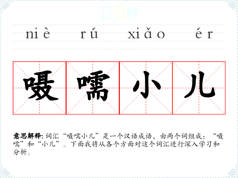 - 字面意思:“嗫嚅”指的是说话时吞吞吐吐、含糊不清的样子;“小儿”则是指小孩子。