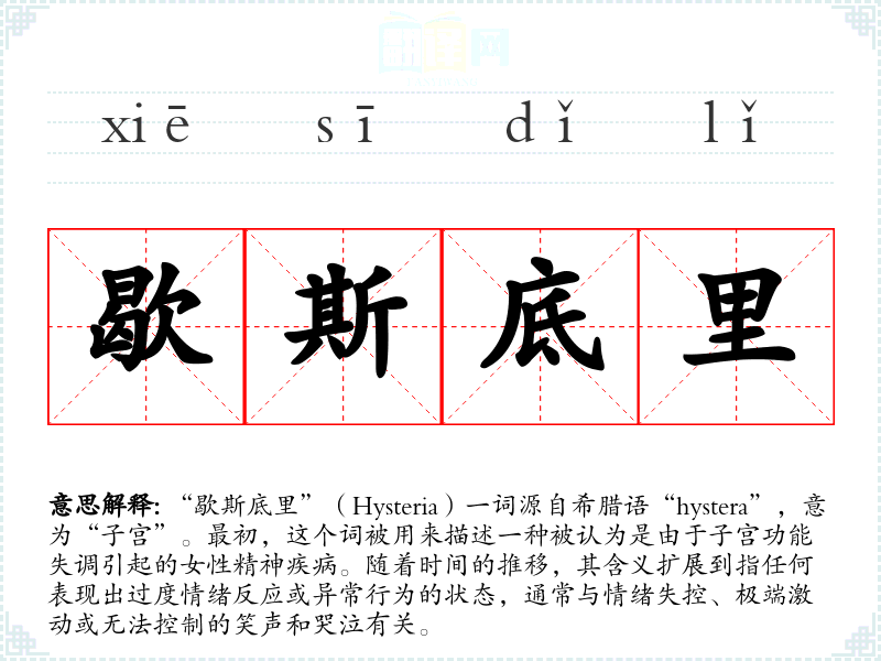 在不同语言中,“歇斯底里”可能有不同的对应词汇,但其核心含义——极端情绪反应——是普遍存在的。例如,在法语中,“hystérie”直接对应于英语的“hysteria”。