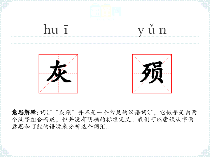 词汇“灰殒”并不是一个常见的汉语词汇,它似乎是由两个汉字组合而成,但并没有明确的标准定义。我们可以尝试从字面意思和可能的语境来分析这个词汇。