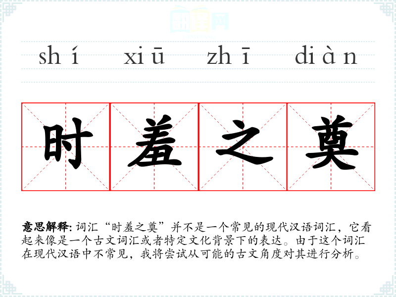 词汇“时羞之奠”并不是一个常见的现代汉语词汇,它看起来像是一个古文词汇或者特定文化背景下的表达。由于这个词汇在现代汉语中不常见,我将尝试从可能的古文角度对其进行分析。