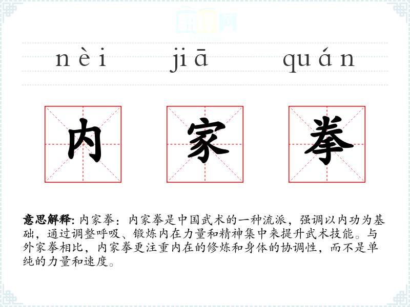 "内家拳"的意思解释、内家拳是什么意思由翻译网汉语词典查词提供。