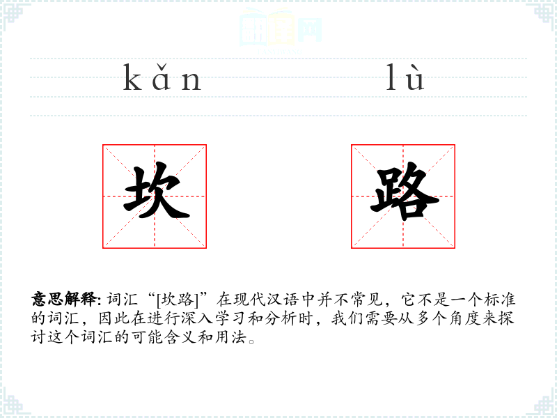 词汇“[坎路]”在现代汉语中并不常见,它不是一个标准的词汇,因此在进行深入学习和分析时,我们需要从多个角度来探讨这个词汇的可能含义和用法。