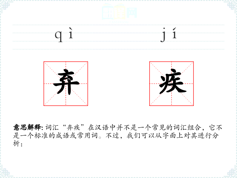 词汇“弃疾”在汉语中并不是一个常见的词汇组合,它不是一个标准的成语或常用词。不过,我们可以从字面上对其进行分析: