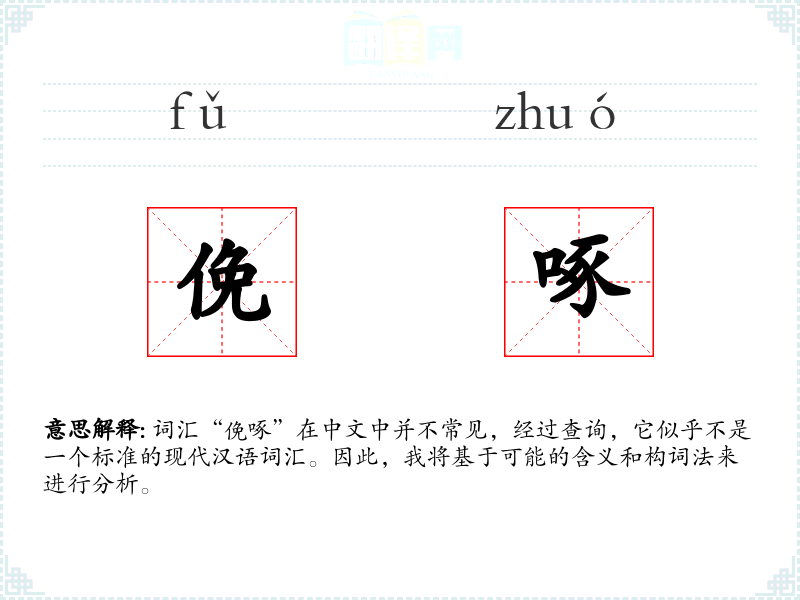 词汇“俛啄”在中文中并不常见,经过查询,它似乎不是一个标准的现代汉语词汇。因此,我将基于可能的含义和构词法来进行分析。