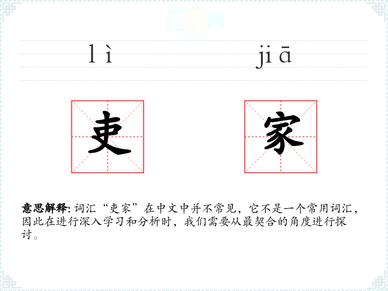 词汇“吏家”在中文中并不常见,它不是一个常用词汇,因此在进行深入学*和分析时,我们需要从最契合的角度进行探讨。