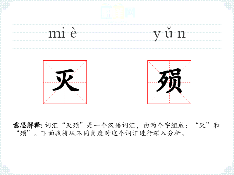 词汇“灭殒”是一个汉语词汇,由两个字组成:“灭”和“殒”。下面我将从不同角度对这个词汇进行深入分析。