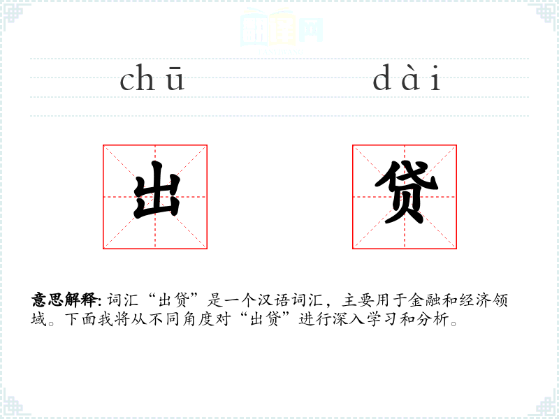 词汇“出贷”是一个汉语词汇,主要用于金融和经济领域。下面我将从不同角度对“出贷”进行深入学*和分析。