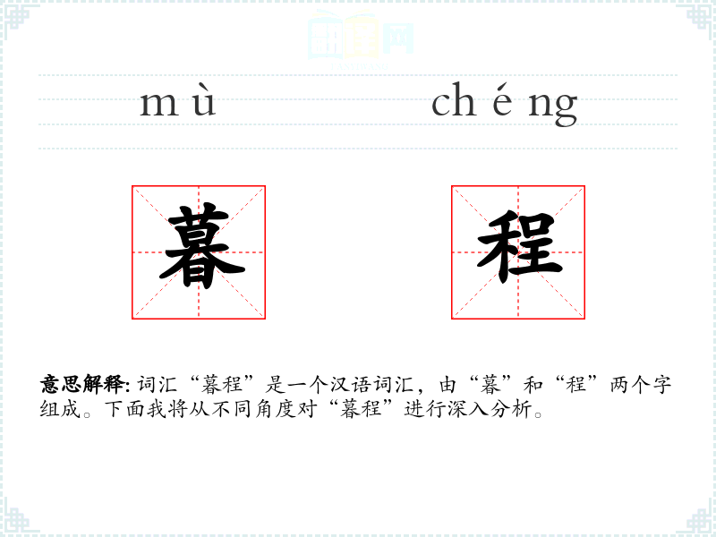 "暮程"的意思解释、暮程是什么意思由翻译网汉语词典查词提供。