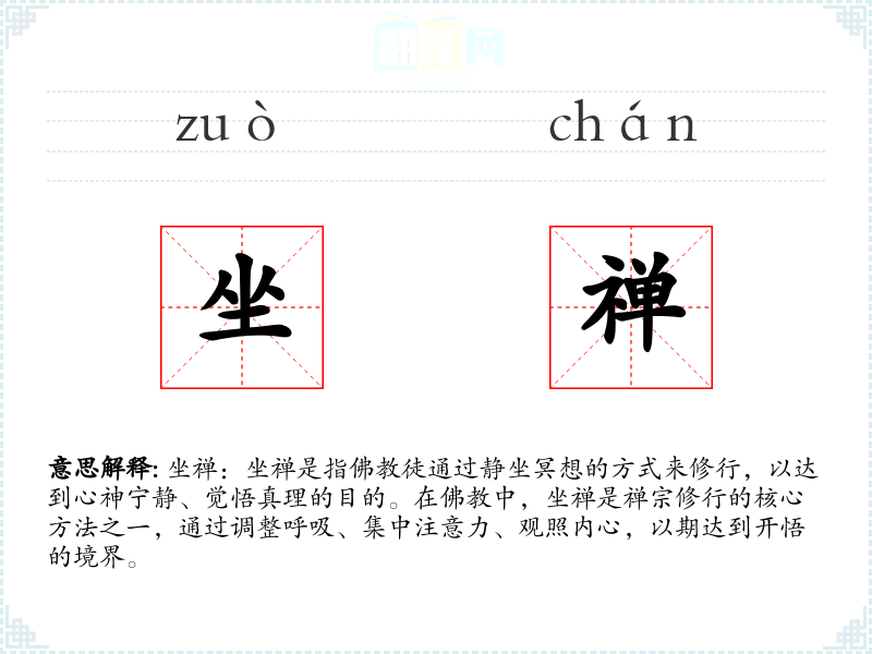 词源:坐禅一词源自*,特别是禅宗。禅宗强调通过坐禅来直接体验真理,而不是仅仅通过理论学。
