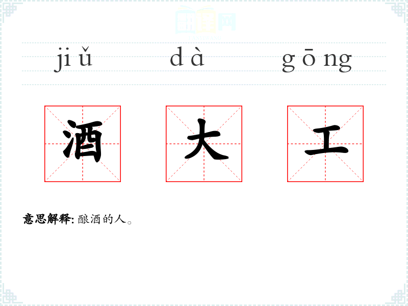 酒大工的分字解释