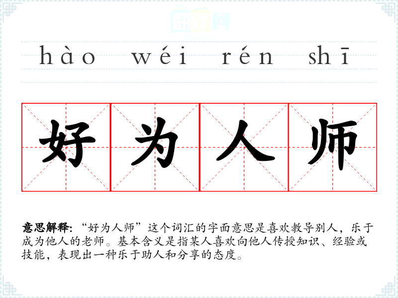 在英语中,“好为人师”可以对应为“enjoy teaching others”或“love to be a mentor”。在不同的文化中,乐于助人和分享知识的行为通常被视为积极的品质,尽管在某些情况下,这种行为可能被视为过于自负或爱炫耀。