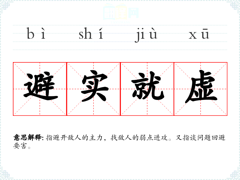 指避开敌人的主力,找敌人的弱点进攻。又指谈问题回避要害。