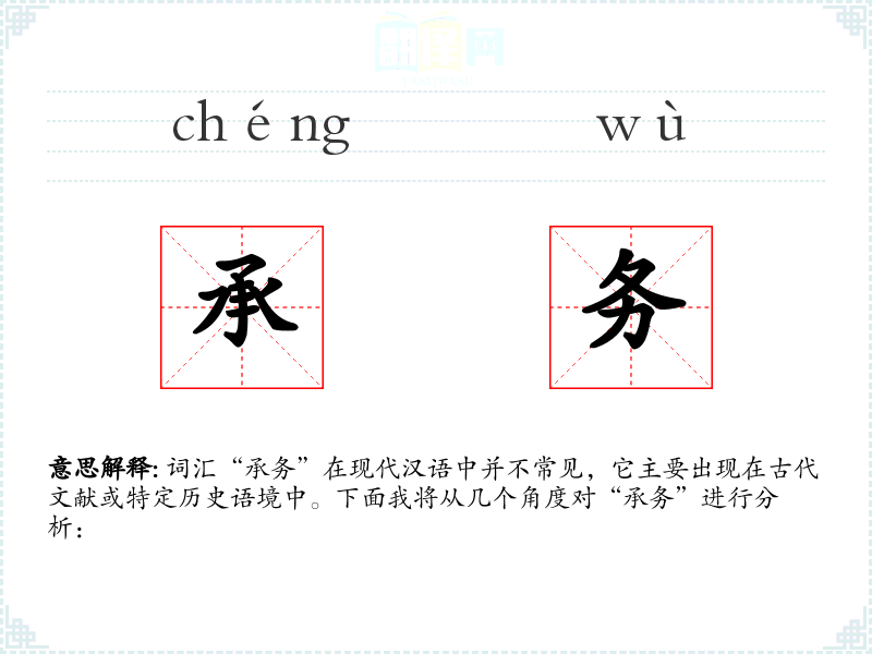 词汇“承务”在现代汉语中并不常见,它主要出现在古代文献或特定历史语境中。下面我将从几个角度对“承务”进行分析: