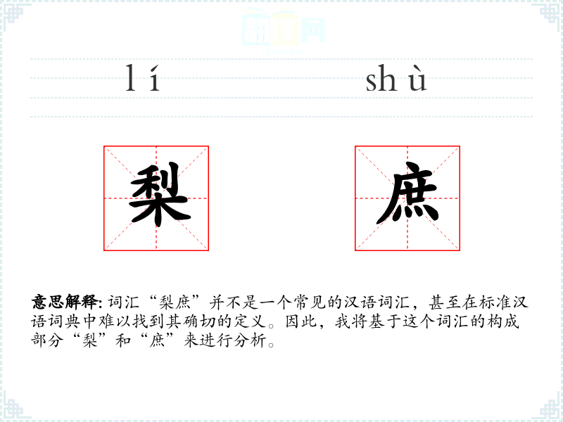 “梨庶”作为一个非标准词汇,其分析更多依赖于构成部分“梨”和“庶”的含义和联想。在语言学*和表达中,了解词汇的构成和可能的联想对于丰富表达方式是有帮助的。