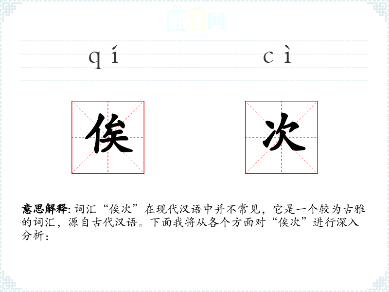 词汇“俟次”在现代汉语中并不常见,它是一个较为古雅的词汇,源自古代汉语。下面我将从各个方面对“俟次”进行深入分析: