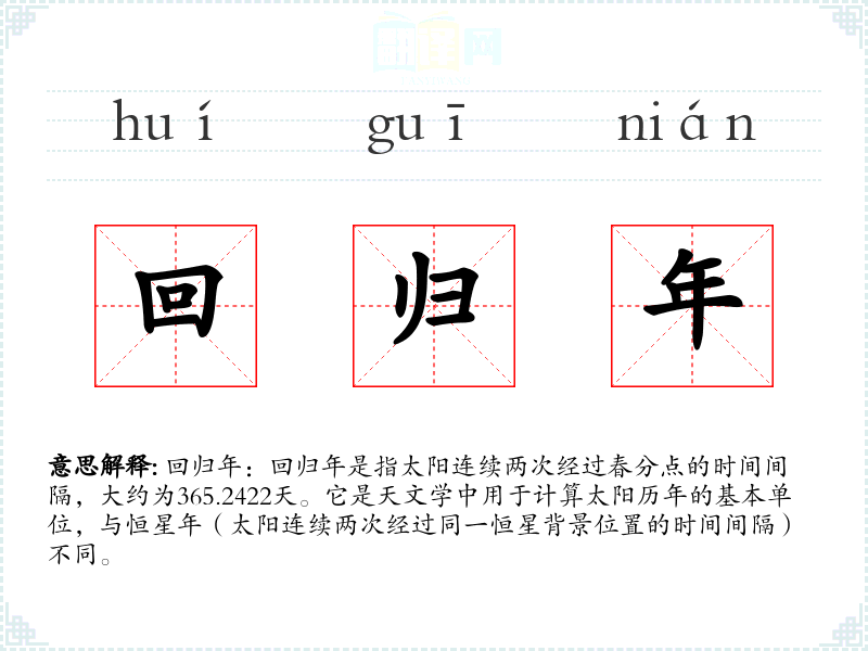 "回归年"的意思解释、回归年是什么意思由翻译网汉语词典查词提供。