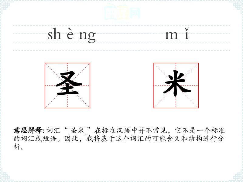 词汇“[圣米]”在标准汉语中并不常见,它不是一个标准的词汇或短语。因此,我将基于这个词汇的可能含义和结构进行分析。