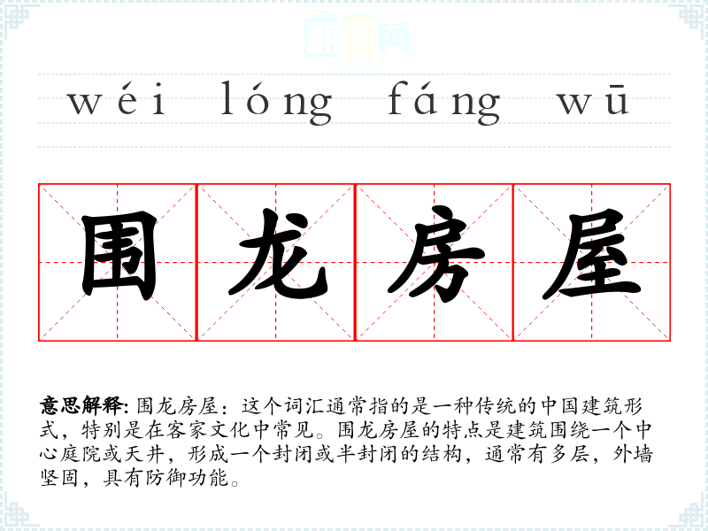 同义词:围屋、土楼(特指客家围龙房屋) 反义词:独立屋、现代公寓
