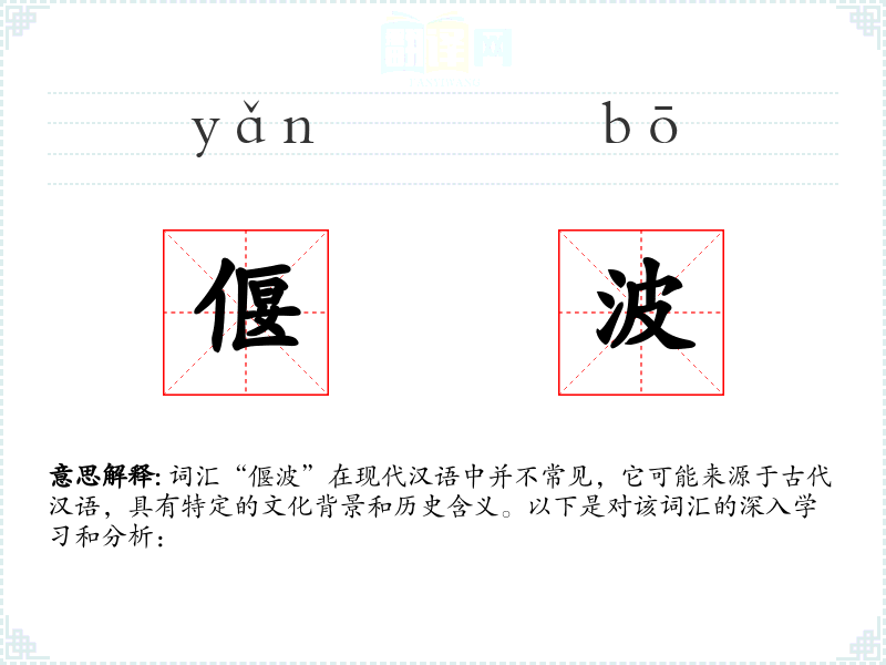 词汇“偃波”在现代汉语中并不常见,它可能来源于古代汉语,具有特定的文化背景和历史含义。以下是对该词汇的深入学*和分析: