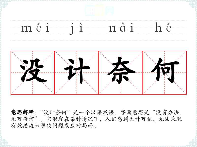 “没计奈何”是一个汉语成语,字面意思是“没有办法,无可奈何”。它形容在某种情况下,人们感到无计可施,无法采取有效措施来解决问题或应对局面。