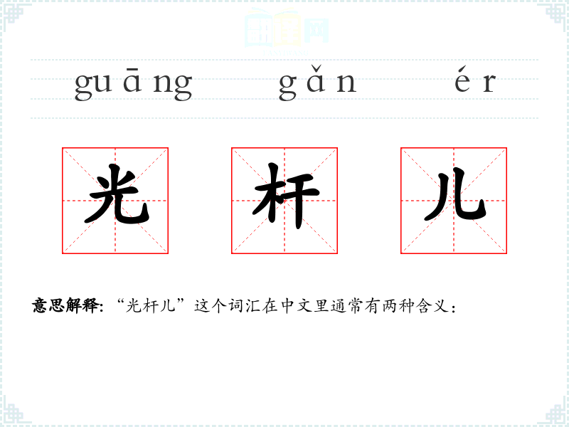 "光杆儿"的意思解释、光杆儿是什么意思由翻译网汉语词典查词提供。