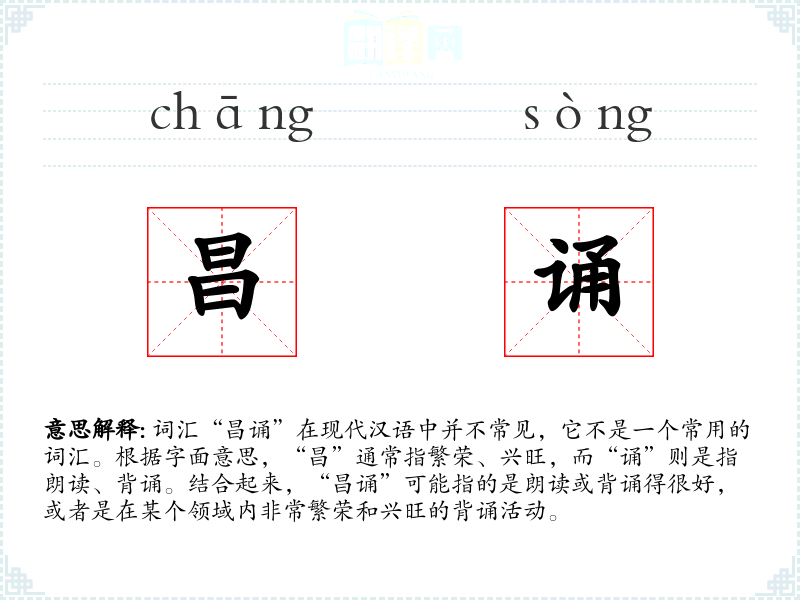 - 词源:“昌”和“诵”都是古代汉语词汇,分别有其悠久的历史。