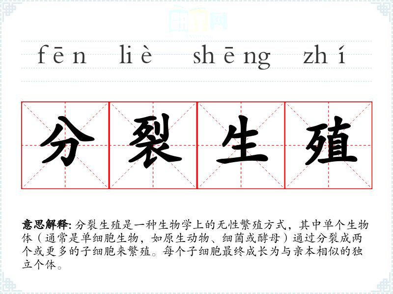 “分裂生殖”是一个重要的生物学概念,它不仅帮助我们理解生命的基本机制,也促进了科学和技术的发展。在学习语言和科学时,理解这样的专业术语对于构建知识体系至关重要。