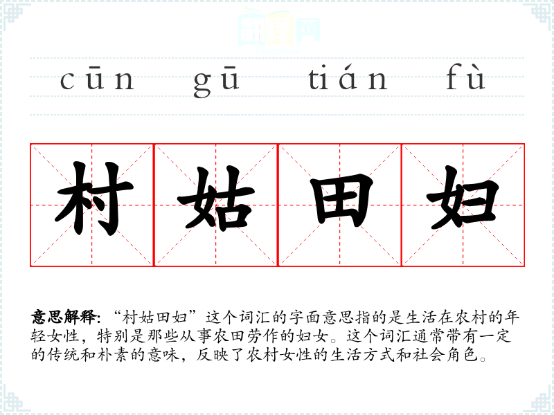 “村姑田妇”这个词汇的词源较为直接,由“村姑”和“田妇”两个词组合而成。在历史上,这个词汇一直用来描述农村女性的生活状态,但随着社会的发展,其使用频率可能有所下降,尤其是在现代都市化进程加快的背景下。