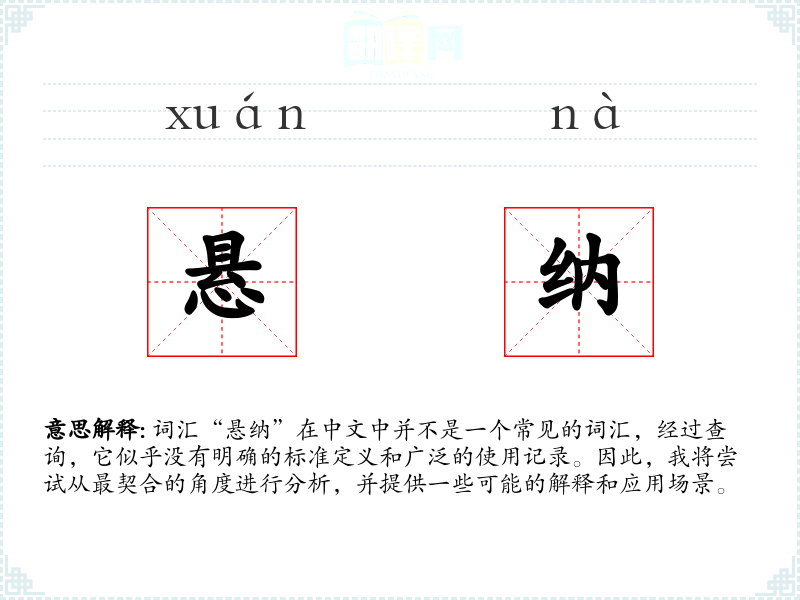 由于“悬纳”不是一个标准词汇,对其的理解可能需要创造性的解释和应用。在语言学习和表达中,了解和掌握常用词汇更为重要。对于不常见的词汇,可以通过创造性的方式来探索其可能的含义和应用场景。