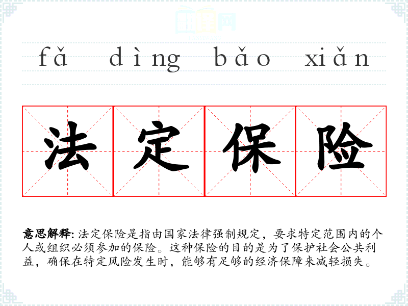 "法定保险"的意思解释、法定保险是什么意思由翻译网汉语词典查词提供。