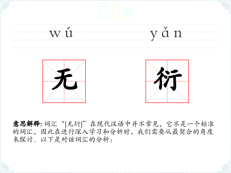 词汇“[无衍]”在现代汉语中并不常见,它不是一个标准的词汇,因此在进行深入学习和分析时,我们需要从最契合的角度来探讨。以下是对该词汇的分析: