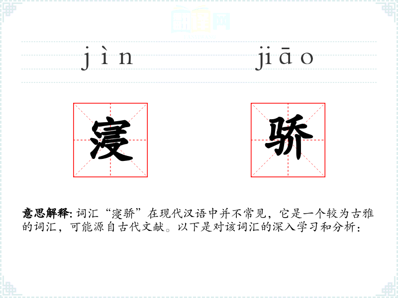 词汇“寖骄”在现代汉语中并不常见,它是一个较为古雅的词汇,可能源自古代文献。以下是对该词汇的深入学习和分析: