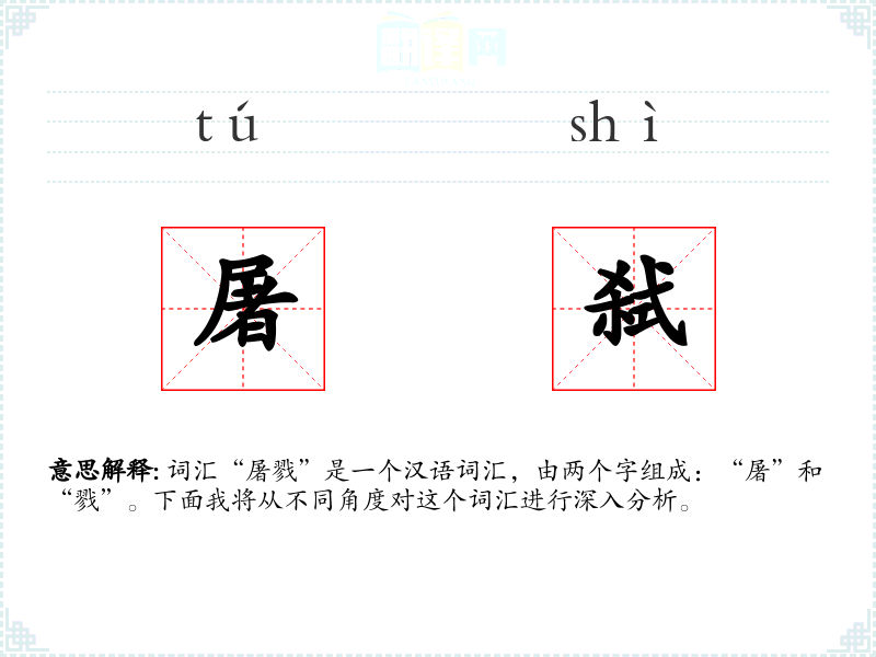 词汇“屠戮”是一个汉语词汇,由两个字组成:“屠”和“戮”。下面我将从不同角度对这个词汇进行深入分析。