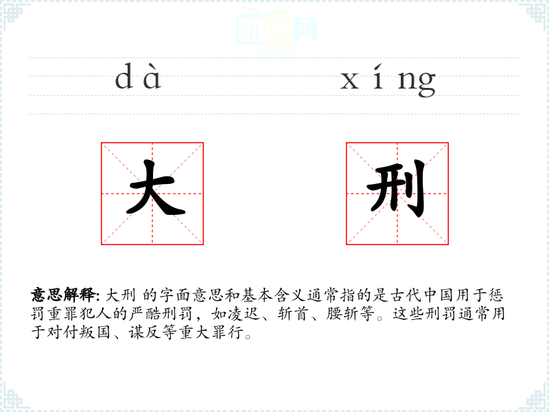 “大刑”一词源自古代汉语,随着时间的推移,其含义逐渐固定为指代严酷的刑罚。在古代法律文献中,如《唐律疏议》中,可以看到对“大刑”具体实施的详细记载。
