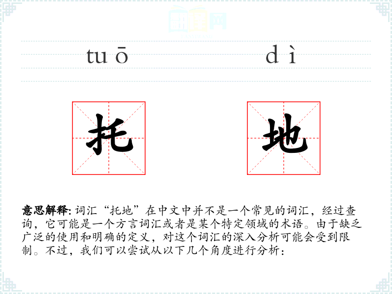 由于“托地”不是一个标准词汇,我们无法结合图片、音乐或视频进行分析。