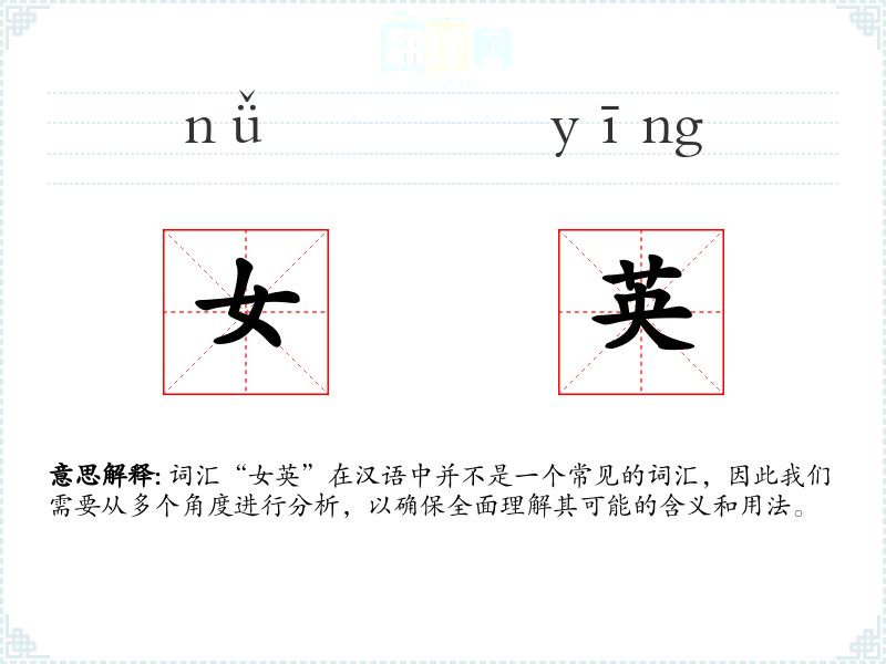 词汇“女英”在汉语中并不是一个常见的词汇,因此我们需要从多个角度进行分析,以确保全面理解其可能的含义和用法。