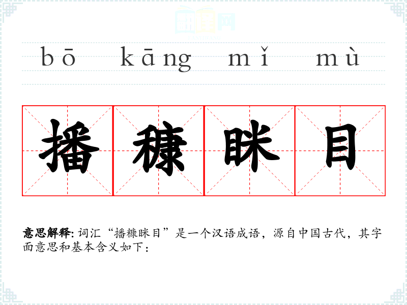 词汇“播糠眯目”是一个汉语成语,源自**古代,其字面意思和基本含义如下: