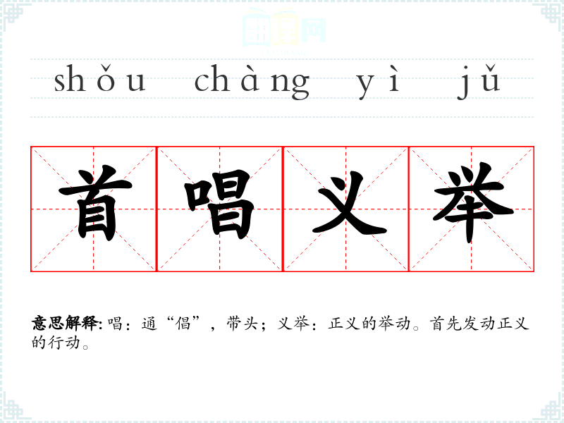 唱:通“倡”,带头;义举:正义的举动。首先发动正义的行动。